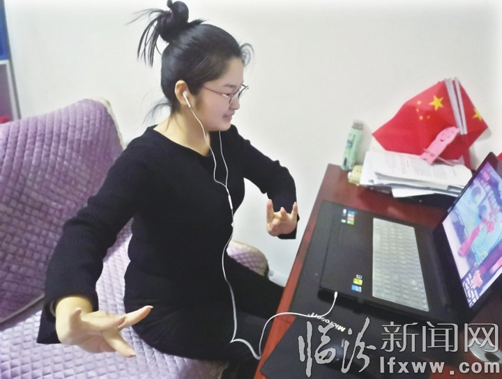 王靜正在電腦前上課