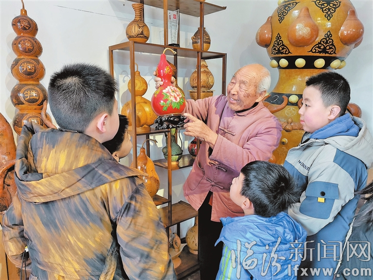 臨汾新聞網(wǎng)訊 假期里,曲沃縣曲村鎮(zhèn)下塢村鄭家大院的葫蘆博物館迎來了許多小客人。非遺傳承人鄭月巴看到孩子們對各種葫蘆工藝品十分喜愛,便辦起了非遺小課堂,給孩子們講葫蘆文化、葫蘆工藝。