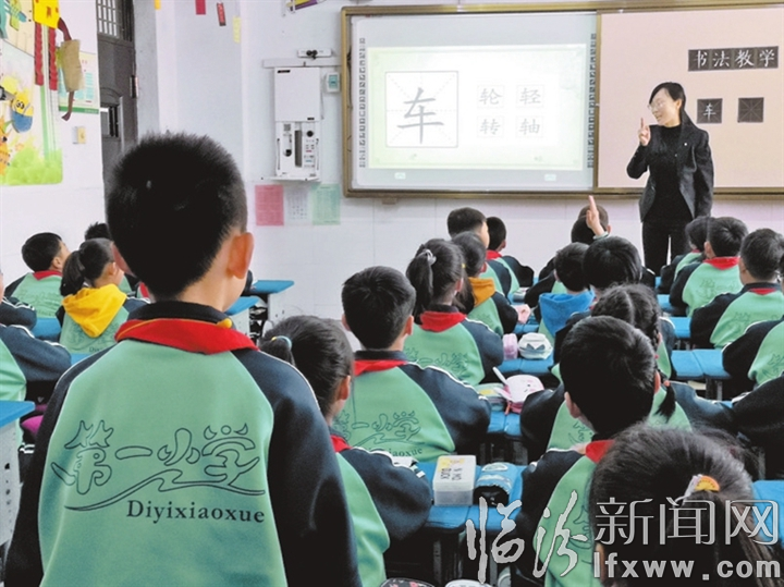 3月23日,襄汾縣第一小學舉辦了第五屆“書法進校園”活動。通過觀摩、展示和交流等方式,把書法的種子種進了孩子們的心田。圖為老師正在給孩子上硬筆書法課。
