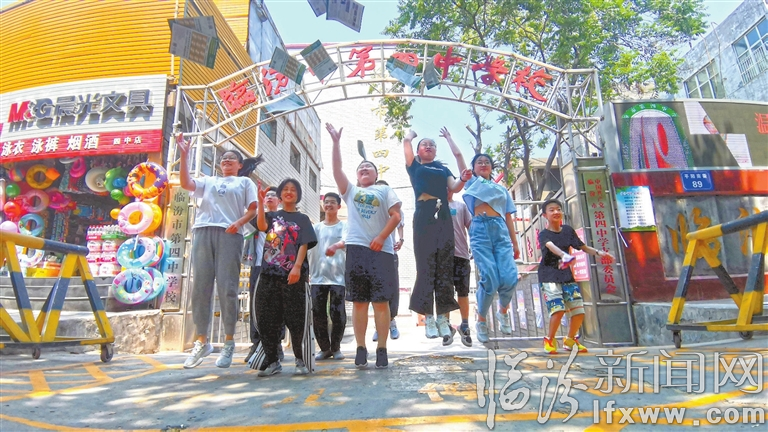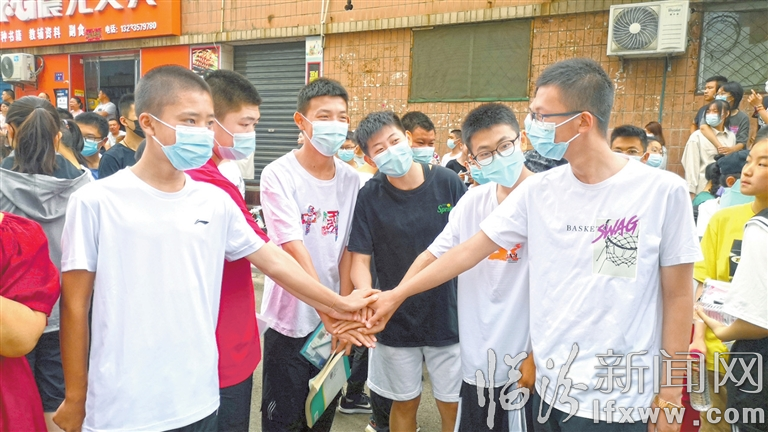 在學校南大門兩側,勵志紅條幅格外醒目,助陣鑼鼓隊氣勢恢弘,紅地毯、紅色狀元門成為校園內一道亮麗的風景。老師們身穿寄托祝福的紅色短袖,手腕系著“中考必勝”的紅繩;考生們自信滿滿,笑容燦爛如朝陽,現場氣氛熱烈、催人奮進。