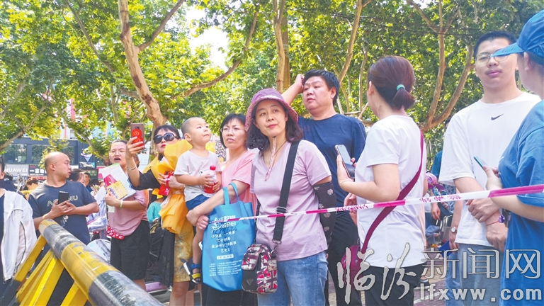 人群中穿著深色花卉圖案旗袍的王媽媽十分搶眼。她告訴記者,為了給兒子加油,討個好彩頭,特意定制了這件四位數的旗袍。“早上出門時,我就對兒子說,這是你人生的第一場‘戰爭’,加油!”