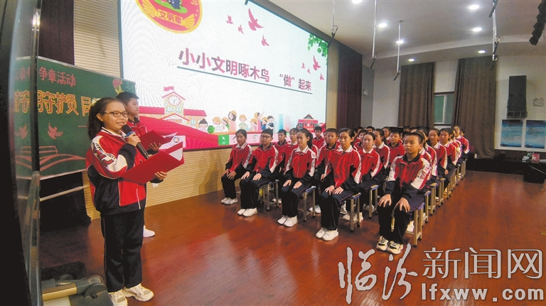 這是該校六(5)班中隊開展的“爭做文明守護員 同心共建文明城”紅領巾獎章——文明章爭章活動主題中隊會現場。活動中,他們通過宣傳文明城市“賽起來”、靚麗臨汾風景線“亮起來”、小小文明啄木鳥“做起來”、養成文明好習慣“演起來”、文明環保小衛士“分起來”、文明家庭創意品“變起來”六個篇章,展示了少先隊員們積極參與學校“紅領巾獎章”特色文明章爭章活動的各項內容,讓隊員們更加深刻地明白了創建文明城市,要在細微之處見精神,在舉止之間顯文明。