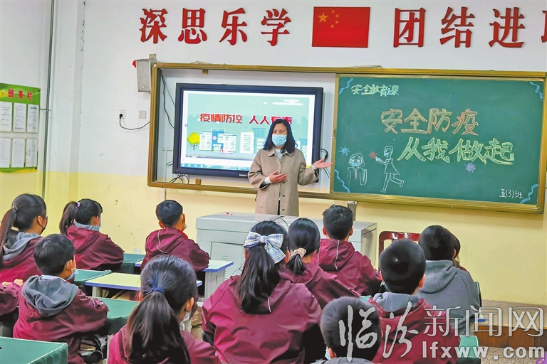 臨汾新聞網(wǎng)訊 為了更好地落實(shí)疫情防控有關(guān)措施,市第二小學(xué)各班開(kāi)展了以疫情防控為內(nèi)容的安全教育活動(dòng),讓學(xué)生進(jìn)一步學(xué)習(xí)防疫知識(shí),養(yǎng)成良好的衛(wèi)生習(xí)慣,學(xué)會(huì)用正確的方法保護(hù)自己。圖為該校老師正在為同學(xué)們講授防疫知識(shí)。記者 攝