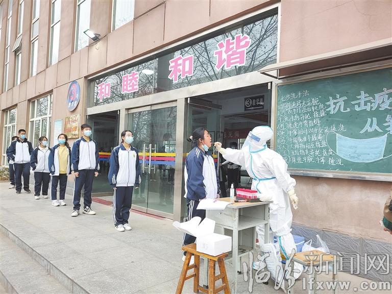 臨汾新聞網訊 為進一步筑牢校園疫情防線,全力保障廣大師生的生命安全和身體健康,近日,侯馬市教科局組織該市中小學校開展核酸檢測采樣工作。圖為侯馬一中核酸采樣現場。
