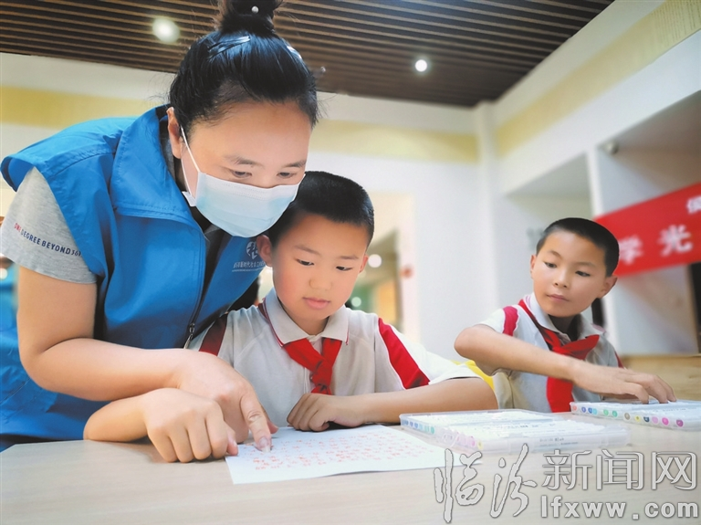 臨汾新聞網訊 7月30日,在侯馬新時代社會工作服務中心,社工人員在給托管班的孩子輔導作業。暑假來臨后,該中心開辦了托管班,為工作忙碌的家長排憂解難、提供服務。