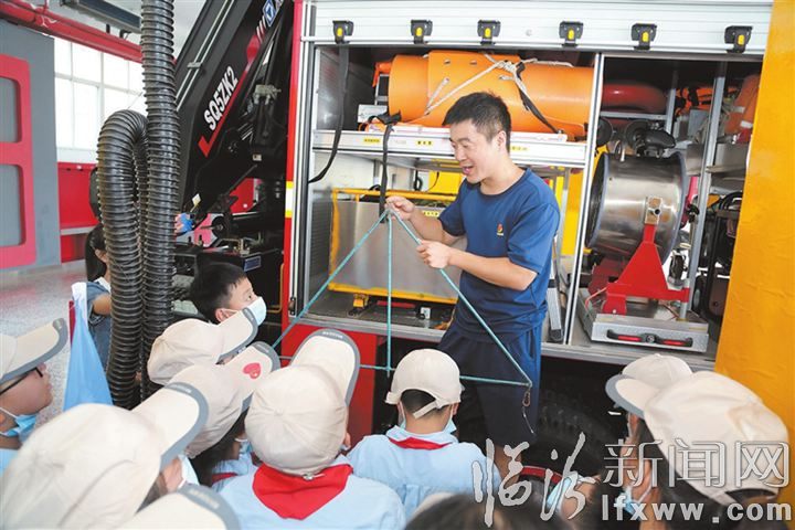 臨汾新聞網訊 暑假期間,我市組織各校開展了“喜迎二十大 爭做好隊員”少年兒童暑期社會實踐營活動,鍛煉了他們的實踐能力,豐富了他們的暑假生活。圖為市第一小學學生正在認真聽臨汾市消防救援支隊隊員講解消防車上的裝備。
