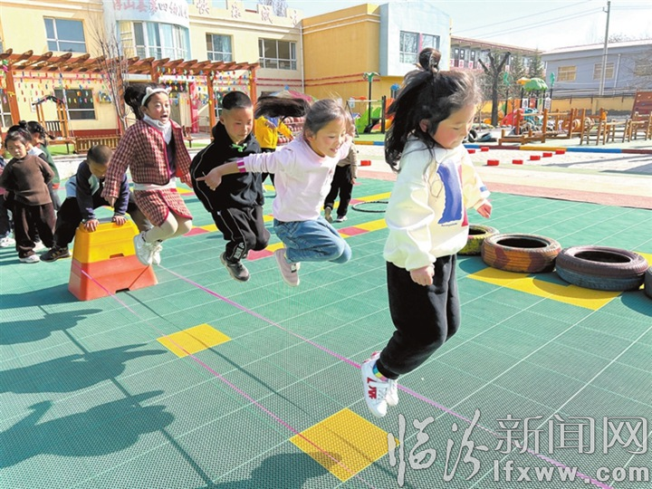 臨汾新聞網訊 4月7日,浮山縣第四幼兒園開展了形式多樣的戶外“體能大循環”活動,進一步增強了幼兒體質,提高了他們的運動能力。圖為幼兒正在快樂跳繩。