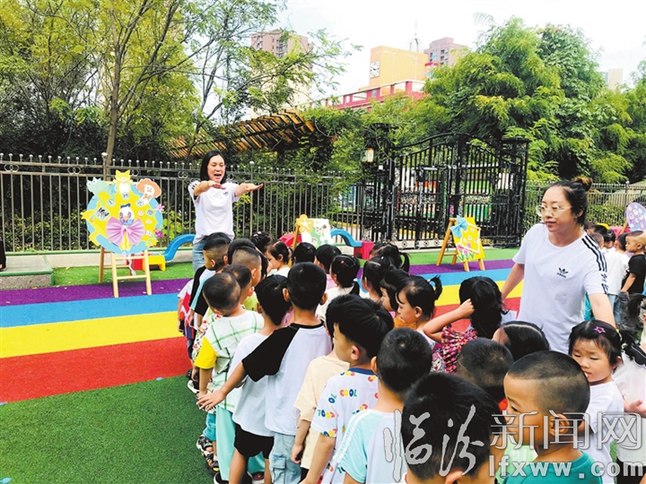臨汾新聞網訊 新學期伊始,我市各校開展豐富多彩的“開學第一課”,讓學生們以嶄新的面貌、飽滿的熱情投入到學習和生活中來。圖為9月4日,堯都區第三幼兒園老師在教小朋友做課間操。