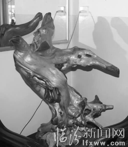 這時,根雕協會常務理事劉玉川接過了話茬:是啊,家里有塊木料都放了好幾年了,一直沒舍得動手,不時圍著它看看,能不能雕出個新意來,就怕把好料浪費了。”劉玉川說,根雕藝術講究七分自然,三分人工,它不同于石雕、木雕,可以復制。根雕一般是沒有復制品的,它只能根據樹根的原始形態進行雕琢,它的生命力就在于要保存它原始天然的風貌。