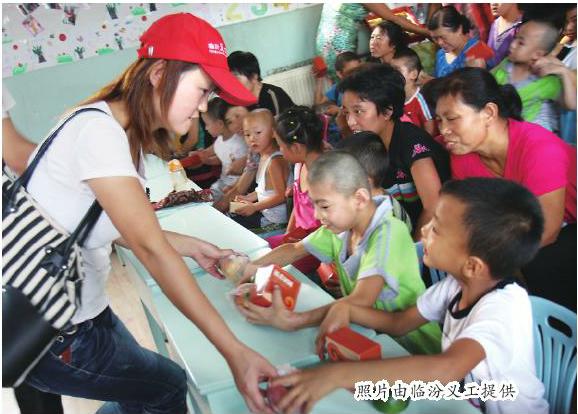 “募捐活動(dòng)就設(shè)在鼓樓廣場(chǎng)。”臨汾義工們抱著募捐箱在街道旁、廣場(chǎng)中向過(guò)往行人說(shuō)明四胞胎一家的困境,希望人們伸出援助之手。