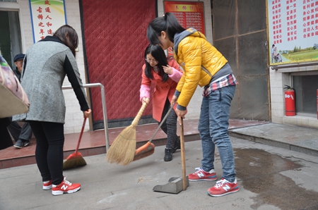 在敬老院里,學生們幫老人打掃衛生,把院子里的護欄、窗臺擦得明亮,地上的贓物清理干凈之后,走進老人們的宿舍,陪他們聊天,了解關心他們的日常生活。