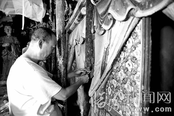 臨汾新聞網訊 7月4日,在堯都區土門鎮東羊村工人正在修復元代建筑東羊后土廟。據悉,東羊后土廟始建于元至元二十年(1282年),元大德七年(1303年)地震毀,元至正五年(1345年)重修,現存大殿、獻亭、戲臺等,其中戲臺仍保持元代風格。該工程屬山西早期古建、雕塑文物保護項目,由國家文物局投資修復。記者 孫國芳 攝
