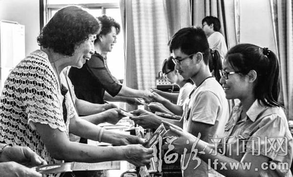 圖為8月21日,堯都區慈善總會為46名貧困大學生每人發放3000元助學金。見習記者 鄭遠飛攝