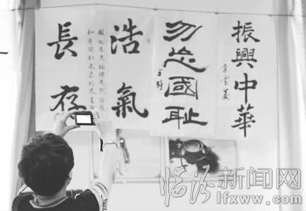 臨汾新聞網訊 8月24日,市自來水公司紀念抗戰勝利70周年職工書法展拉開帷幕,80余名作者的近百幅毛筆、硬筆書法作品參展,一首首紅色詩詞,再現了中華民族波瀾壯闊的抗戰史詩。記者 盧凱 張蘊強攝影報道