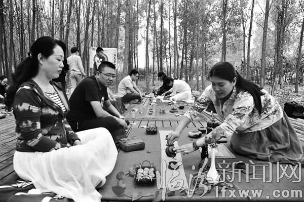 臨汾新聞網(wǎng)訊 10月5日,市雨禾佳茶藝培訓(xùn)中心無我茶會的茶友們在市區(qū)汾河公園內(nèi)品茶論道,體驗(yàn)傳統(tǒng)文化魅力。