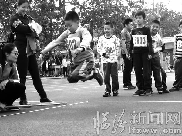 臨汾新聞網(wǎng)訊 10月20日至21日,市第一小學(xué)舉行了秋季運(yùn)動(dòng)會(huì)。全校300名小學(xué)生運(yùn)動(dòng)員參加了袋鼠跳、立定跳遠(yuǎn)、長跑、60米接力賽等比賽項(xiàng)目。圖為小學(xué)生在進(jìn)行立定跳遠(yuǎn)比賽。(李子聞攝)