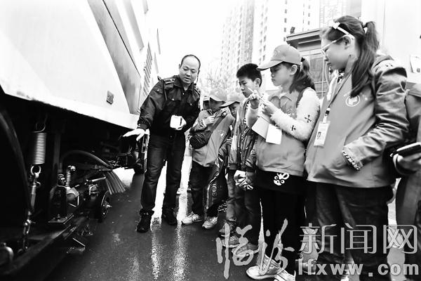 臨汾新聞網訊 10月24日,臨汾日報晚報版組織30余名小記者走進市環衛局北城環衛所舉辦了“我是小小環衛工、愛護衛生我先行”活動。活動中,小記者們參觀了環衛清掃車,聆聽了臨汾環境變化,并向環衛所工作人員學習了愛護環境衛生小常識。 記者 魏華 攝