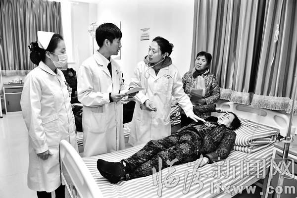 臨汾新聞網訊 11月18日,在莉軼糖尿病醫院大寧分院內科門診部,醫護人員在為患者制訂治療方案。冬季是內科常見病高發季節,該院開展了“冬日送溫暖”醫藥惠民活動,為山區農民建立健康檔案、開設平價藥房等,讓廣大群眾在家門口享受到健康大餐,受到大家歡迎。