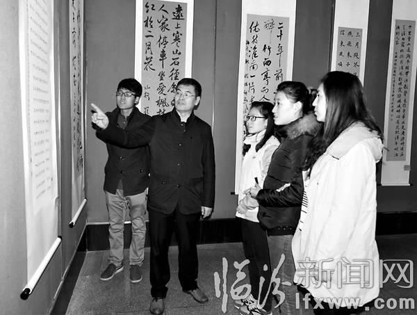 臨汾新聞網訊 近日,山西師大美術館舉辦了“書法學院建院一周年暨書法專業建立十二周年書畫作品展”。此次展覽共展出書畫家、導師、本科生、研究生共232幅書畫作品,吸引了不少學生前來觀看。記者 孫國芳攝