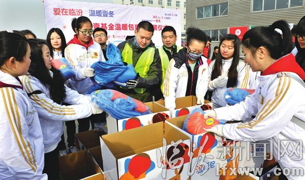 臨汾新聞網(wǎng)訊 12月5日,2015壹基金溫暖包臨汾分裝儀式舉行,我市多家機構(gòu)的百余名志愿者緊張有序地分裝了溫暖包。今年的溫暖包包含棉衣、雪地靴、帽子、圍巾、手套、書包等12種溫馨可愛的兒童常用物品,在元旦前,愛心企業(yè)和志愿者將把這些溫暖包分別送到永和縣和隰縣的受助兒童手中。 記者 閆銳鵬 攝