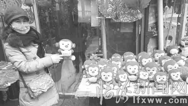 臨汾新聞網訊 1月11日,記者在百匯市場內看到,猴子玩偶已經擺滿了玩具店的柜臺,就連店內的墻壁上都懸掛著猴子玩偶,商家的創意布局吸引不少家長孩子停留選購?!榜R上就要過年了,買幾個玩偶放在家里,喜慶的很!”實習記者 李天 攝