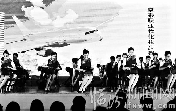 臨汾新聞網訊 近日,山西師范大學首屆空乘專業職業妝大賽暨金通獎學金頒獎晚會在校文化藝術活動中心舉行,40位同學進入職業妝決賽并進行了化妝展示。據悉,該校空乘專業代表隊在2015年全國高校空乘專業推介展示會上獲得團體綜合冠軍,146名同學參加現場應聘,其中123名同學被南方航空、廈門航空、北京首都機場、廣州白云機場錄取。