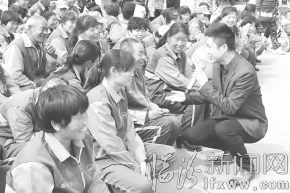 臨汾新聞網訊 4月8日,“大美臨汾群眾文化基層行”走進古城公園慰問環衛工人,由市群藝館鑼鼓隊表演威風鑼鼓《向環衛工人致敬》拉開了演出的序幕,嘹亮的歌曲、感人的小品、優美的舞蹈等文藝節目,給到場的環衛工人和市民獻上了一場豐富多彩的文化大餐。