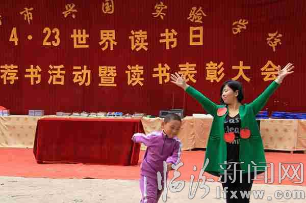 臨汾新聞網訊 4月23日,在我市興國實驗學校小學部,老師在和學生做互動游戲。當日是世界讀書日,該學校舉辦了主題為“閱讀提升校園品位,求知豐富精彩人生”讀書活動,通過誦讀弟子規、情景劇以及讀書會等活動,培養學生愛讀書、讀好書的良好習慣。