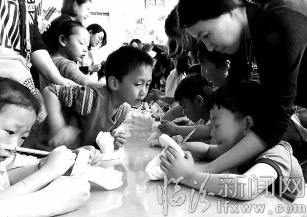 臨汾新聞網訊 近日,山西師大幼兒園舉辦了家長開放日活動。讓家長走進幼兒園,了解幼兒生活,參與幼兒教育,搭建起了家園共育的橋梁。圖為在老師與家長的指導下,大三班的孩子們親手制作自己的小手模具。(饒二保 梁海花)
