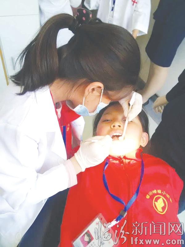 “這位同學,你有兩顆蛀牙哦,記得趕緊讓爸爸媽媽帶著你來醫院做窩溝封閉,不然牙齒會壞的。”在為一位小記者診斷后,牙科醫生告訴大家要勤刷牙、少吃零食,小記者們紛紛點頭答應。