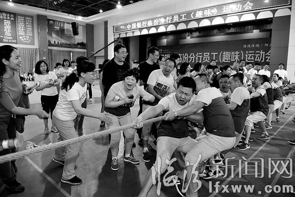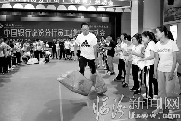 臨汾新聞網訊 為豐富職工文化生活,舒緩員工工作壓力,推動全員健身鍛煉,增強員工體質和凝聚力,營造團結和諧、健康向上的集體氛圍,近日,中行臨汾市分行舉辦2016年職工(趣味)運動會,該行轄屬網點、內設部門的12支代表隊270余名員工參加比賽。此次比賽項目有“旱地龍舟”袋鼠運瓜”快樂大腳”拔河耐力賽”等。運動會以“強體質、聚合力、促發展”為主題,既突出了群體性、參與性,又突出了趣味性、競技性,員工身體得到鍛煉、體質得到增強,愉悅了身心,陶冶了情操,振奮了精神,提振了全體員工的向心力、凝聚力和戰斗力。郝勤猛 攝