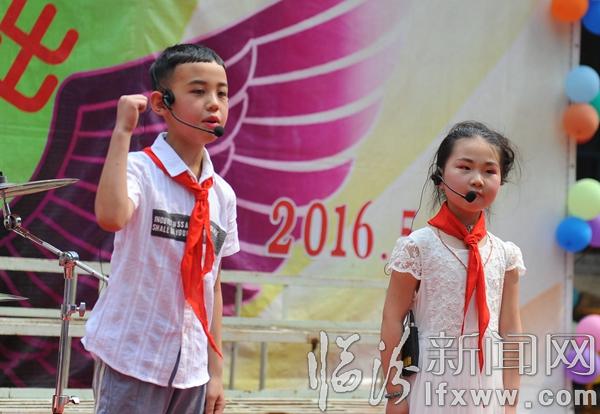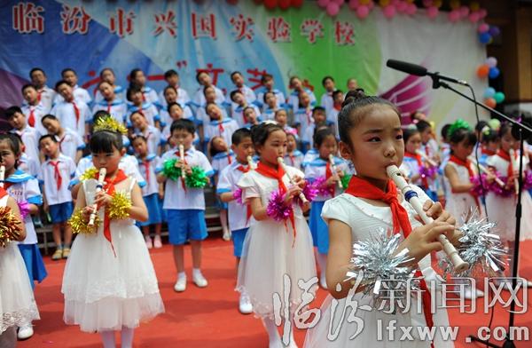 臨汾新聞網訊 5月31日,我市興國實驗學校小學部的孩子們在表演快板。當日,該?!胺棚w夢想,歡慶六一”主題活動舉辦,通過學生們的才藝展示,在歡歌笑語中慶祝六一國際兒童節的到來。