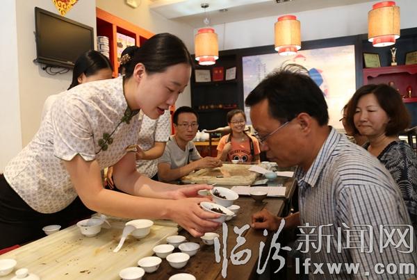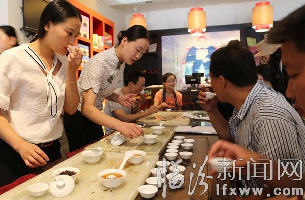 臨汾新聞網訊 6月25日,在我市日春茶業,工作人員在為茶藝愛好者講解茶葉的品質。當日,日春茶業舉辦的主題為“夏日品茗,茶王爭艷”茶王賽吸引了我市茶藝愛好者前來品茶,活動現場,主辦方通過紅茶、綠茶、烏龍茶以及普洱茶等茶系的現場泡茶、品茶、鑒茶等環節,搭建一個分享學習平臺,讓更多的市民和愛茶之人,了解高質量的好茶,掌握辨別茶葉品質的知識,傳播傳統文化知識,促進我市茶文化的健康和諧發展。 記者 閆銳鵬 攝
