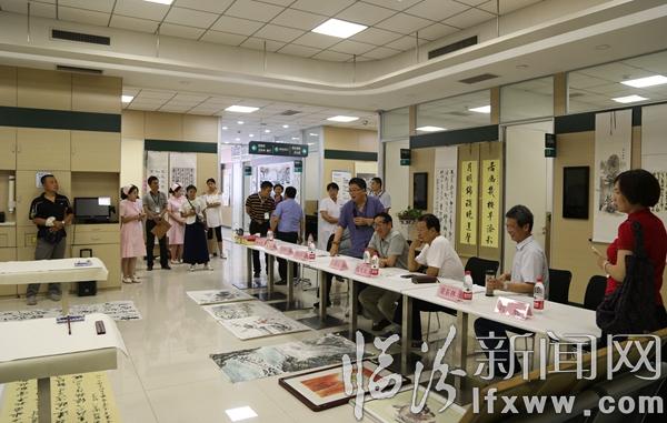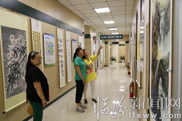 臨汾新聞網訊 6月25日,在我市“和諧杯”書畫大賽上,書畫愛好者在觀看書畫展。當日,臨汾和諧體檢中心首屆書畫大賽舉辦,共征集各界書畫愛好者以及工作人員書畫作品150余幅,作品以“大美臨汾”為主題,以風格迥異、筆法獨特的作品充分展現出大家對生活的熱愛、家鄉的贊美。這次比賽不僅活躍了職工文化生活,也為書畫愛好者搭建了一個展示自我、提升自我的舞臺。記者 閆銳鵬 攝