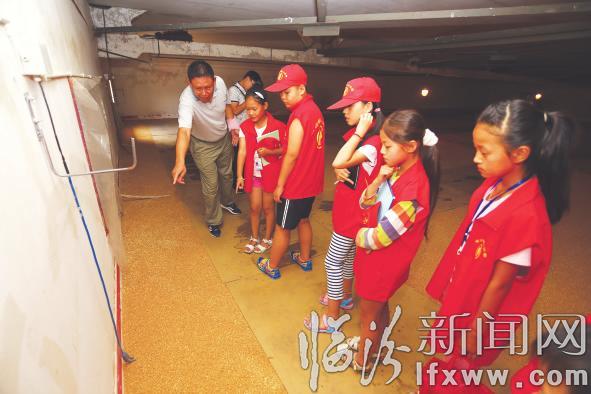 為更加直觀地讓小記者了解糧食儲存,同時樹立節糧愛糧的正確觀念,糧庫工作人員還帶領小記者參觀了糧食儲備庫。