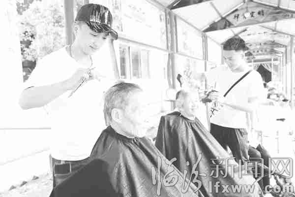 80歲的梁芳蘭說:平常來敬老院的愛心人士挺多,我們很開心?,F在修路,路邊的理發店也搬走了,這次足不出戶就可以剪頭發,這幾個年輕人想得真周到?!?/p>