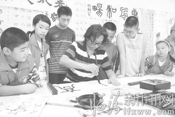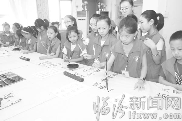 臨汾新聞網(wǎng)訊 世界上沒有哪個民族像中華民族一樣,把自己的文字當(dāng)作藝術(shù)去推崇。書法是漢字特有的傳統(tǒng)藝術(shù),被譽為“無言的詩,無行的舞,無圖的畫,無聲的樂……”8月10日,臨汾晚報小記者團的40余名小記者來到市書法家協(xié)會書法培訓(xùn)中心,了解和學(xué)習(xí)書法的相關(guān)知識。