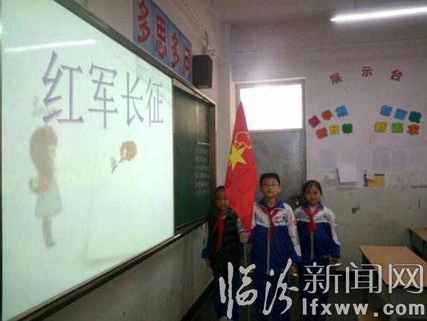 班會開始后,伴隨著班長鄭重莊嚴地出旗儀式,孩子們一一講解著長征的意義、長征的路線以及長征的開端,他們稚嫩的聲音頓時將班內的氣氛引爆開來,血戰湘西、巧渡金沙江、大渡鐵鎖橋、爬雪山、過草地等場面你一言我一語好不熱鬧,孩子們紛紛發言、各抒己見,生怕輪不到自己。原來孩子們從課外了解到的東西還真不少,為我這些優秀的孩子們點贊!