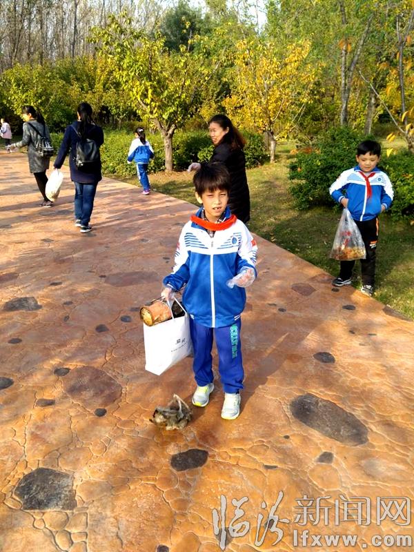 活動開始后,孩子們在前,家長們在后。我們所過之處頓時就會一塵不染,孩子們時而停下腳步比比誰的收獲更多,時而幫助清潔工阿姨整理垃圾,每個人都洋溢著熱火朝天的熱情,好像金秋的艷陽融進漸冷的肌膚一樣。
