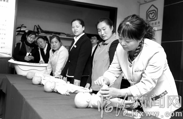 臨汾新聞網訊 日前,在我市華夏中青家政服務中心,家政從業人員在進行育嬰護理知識比賽。全市家庭服務業便民服務市場啟動以來,在規范市場管理的同時,為廣大市民提供了一個面對面選擇家政人員的平臺。