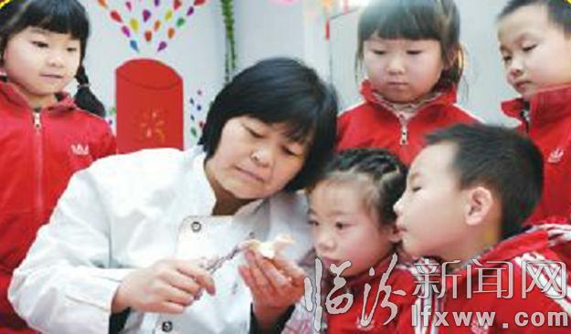 臨汾新聞網訊 堯都區“太平花饃”的制作人徐瑞玲在為社區孩子們講解花饃制作技藝。