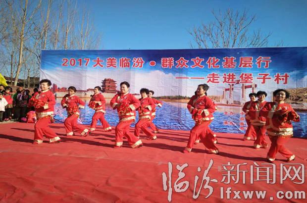 臨汾新聞網訊(記者 安月琦 實習生 寧智豪)2017年2月9日下午3點,“大美臨汾”群眾文化基層行走進我市堯都區堡子村。與以往的演出不同,此次的活動不僅有群藝館藝術團隊的精彩演出,還帶動了鄰村的舞蹈健身隊積極參與,實現了從“送文化”到“種文化”的轉變,群藝館和鄉(鎮)的演員們共同在正月新春之際為鄉親百姓帶來了一臺熱鬧非凡的演出,贏得了在場觀眾的陣陣喝彩。