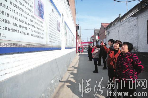臨汾新聞網訊 2月19日,曲沃縣樂昌鎮南吉村群眾正在誦讀該村文化墻上的成語典故。該鎮以社會主義核心價值觀、中國夢、晉國成語典故、新二十四孝及鄉風村容為內容,制作文化墻版面470余塊,受眾達6萬余人。