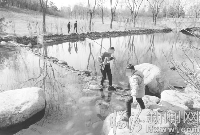 臨汾新聞網(wǎng)訊 2月27日17時(shí)許,記者在九州廣場(chǎng)看到,兩名少年在水邊嬉戲,其中一名少年拿著漁網(wǎng)從濕滑的鵝卵石景觀水堤上通過(guò)。當(dāng)時(shí),廣場(chǎng)上游人稀少,孩子一旦落入水中,后果不堪設(shè)想。