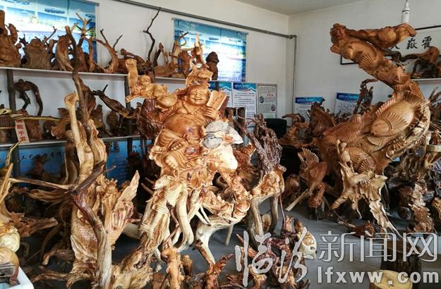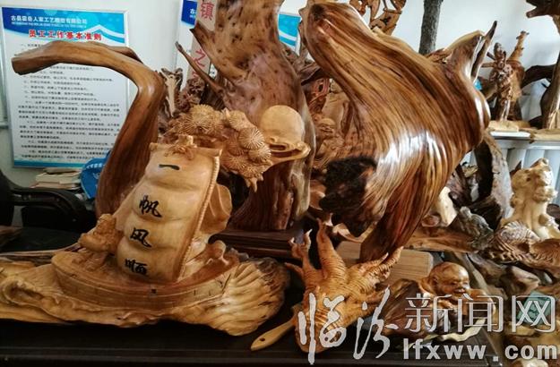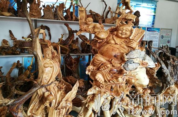 臨汾新聞網訊 (記者 胡麗麗)4月6日春日融融,記者來到古縣霍岳人家工藝雕塑有限公司,參觀根雕作品,仿佛置身于一片藝術的海洋,一件件構思巧妙的作品,令人流連忘返。公司董事長兼總設計師王永紅真是一位能工巧匠,一塊塊、一根根看似笨拙的腐朽的樹根經過他的奇特設計,變成一件件栩栩如生的藝術品。