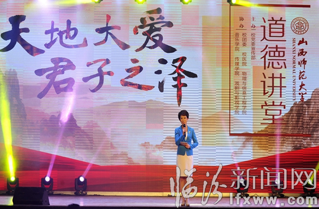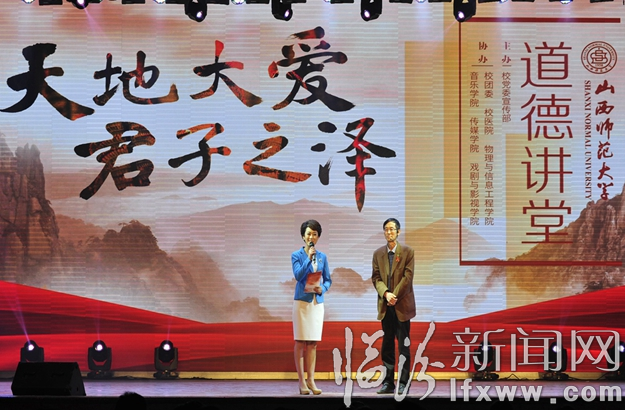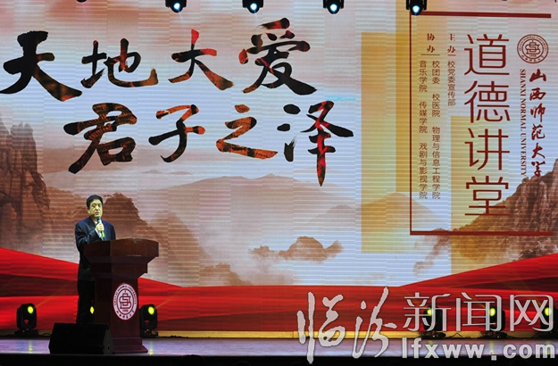 臨汾新聞網(wǎng)訊 (記者 閆銳鵬)典型人物現(xiàn)場講述,大學校長親自授課,千余師生共同聆聽……4月20日晚,山西師范大學舉辦“天地大愛,君子之澤”道德講堂。通過一堂特殊的思政課,弘揚中華民族傳統(tǒng)美德,引領師生踐行社會主義核心價值觀。