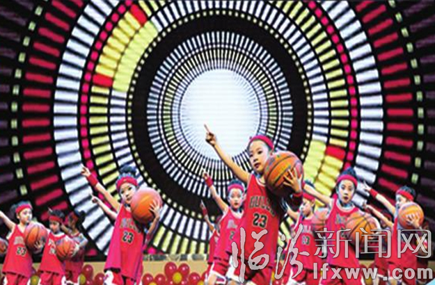 臨汾開發區童心幼兒園的小朋友表演民族舞。韓龍 攝