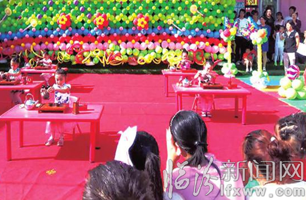 曲沃縣南街幼兒園的小朋友表演茶道。趙瑞瑞 攝