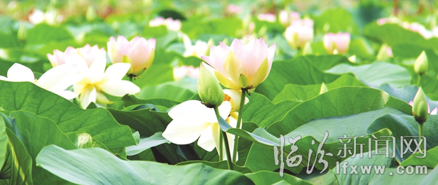 臨汾新聞網(wǎng)訊 日前,汾河公園平陽橋下,大片的荷花競相綻放。