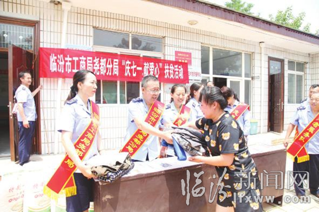 臨汾新聞網訊 6月29日,烈日炎炎,市工商局堯都分局部分黨員組成“志愿者服務隊”奔赴堯都區河底鄉西凹村、交口村,向村民們捐獻了圖書、衣服、面粉等物品,并通過自費購買村民出售的土特產等,將“愛心扶貧”送到了農民朋友的身邊。